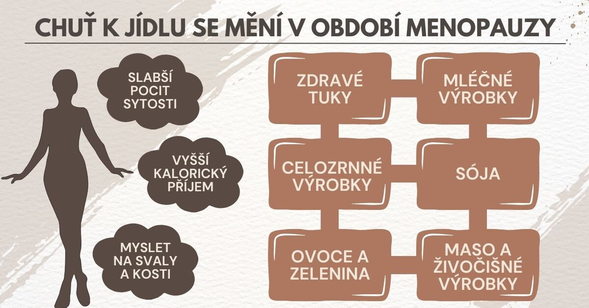Hormonální změny mohou také ovlivnit schopnost těla regulovat hlad a snížit signály sytosti. To znamená, že se po jídle ženy nemusí cítit tak plné jako dříve a příjem kalorií se u nich zvýší. Proto je důležité zařadit do jídelníčku dostatek potravin, které zasytí a mají pozitivní vliv na kvalitu svalů.